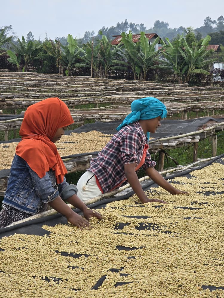 El proceso lavado de Khalid Shifa en Limmu se centra en limpieza y precisión. Las cerezas se recolectan maduras, se despulpan el mismo día y fermentan en agua controlada antes del lavado. Finalmente se secan en camas africanas, favoreciendo un proceso lento y uniforme.
